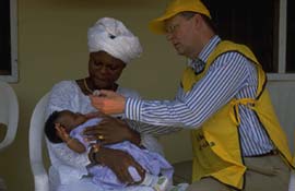 suma. En 2001, un miembro de Rotary vacuna a un recién nacido
